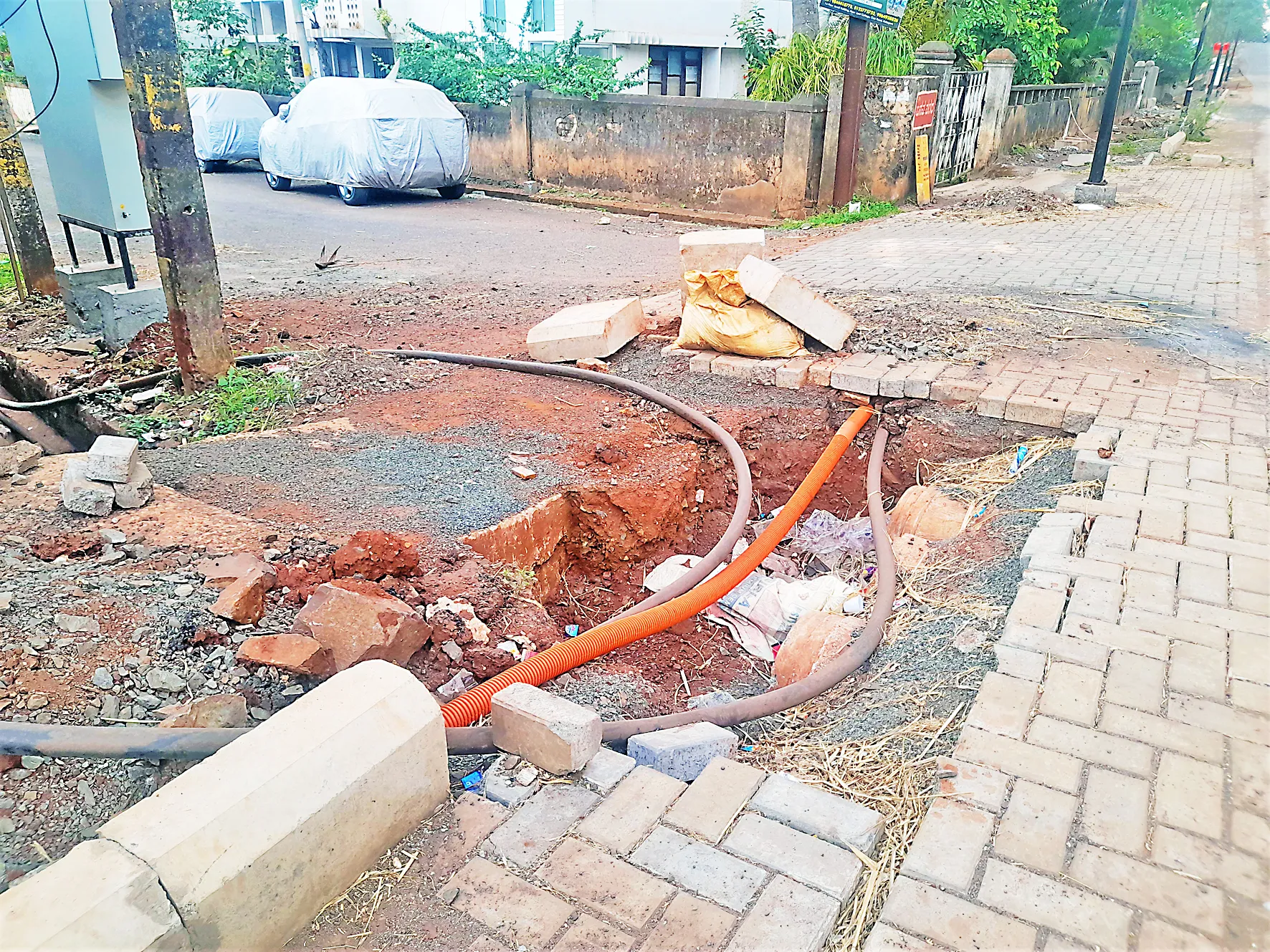 या रस्त्यावरील पथदीप बंद आहेत. पण रस्त्याशेजारी फुटपाथवर दिवे बसविण्यात आले आहेत. फुटपाथ पूर्ण झाले नाहीत, पण दिवे बसविण्याचे काम झाले आहे. सीपीएड मैदान परिसरातील फुटपाथचे काम अर्धवट असल्याने हे काम पूर्ण करण्याकडे कंत्राटदार आणि स्मार्ट सिटी कंपनीच्या अधिकाऱयांचे दुर्लक्ष झाले आहे. या रस्त्याशेजारी कामे पूर्ण होण्यास किती वर्षे लागणार अशी विचारणा होत आहे.