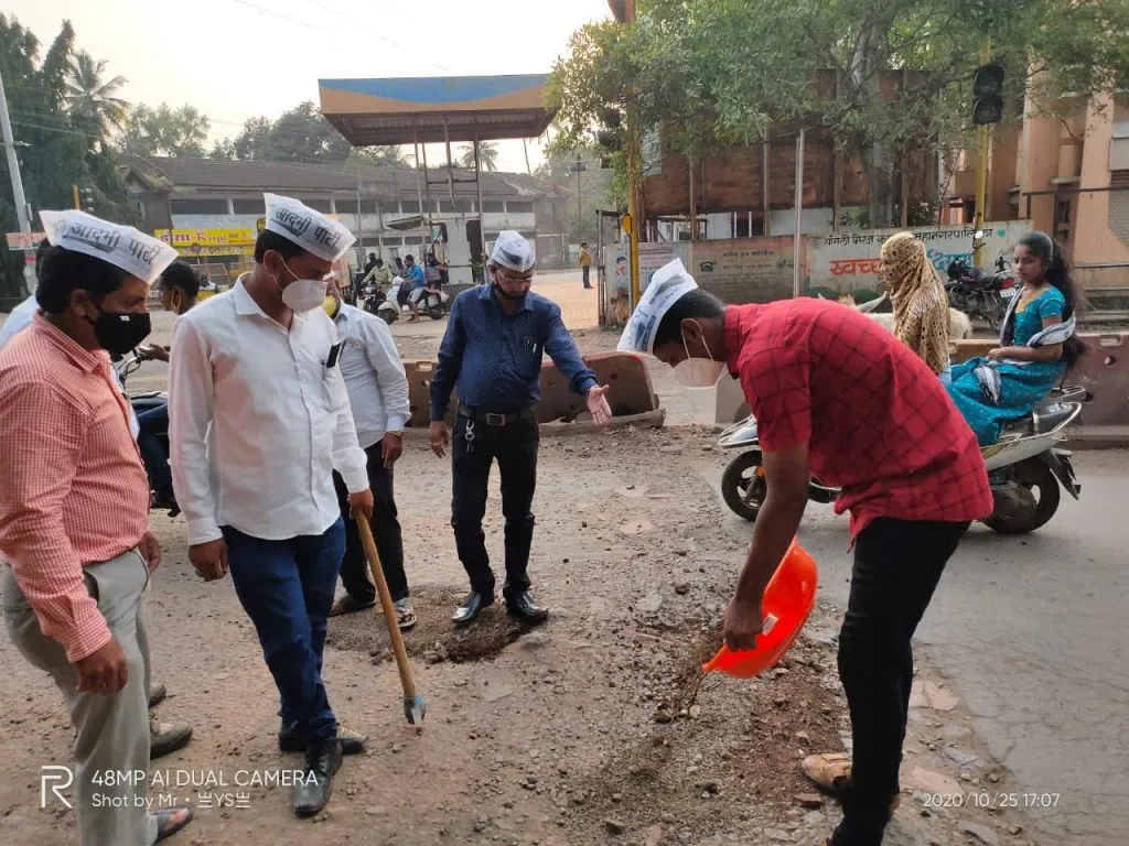 सध्या मिरज शहर आणि परिसरातील सर्वच रस्ते खड्डेमय झाले आहेत. ऐन कोरोनाच्या संकटात स्थानिक प्रशासनावर कामाचा ताण असल्याने निवेदने देऊन आंदोलने करण्यापेक्षा आम आदमी पक्षाच्या कार्यकर्त्यांनी श्रमदानाला प्राधान्य दिले. दसरा सणाच्या पार्श्वभूमीवर कार्यकर्त्यांनी स्वतःच खोरे आणि पाटी घेऊन कामाला सुरुवात केली.