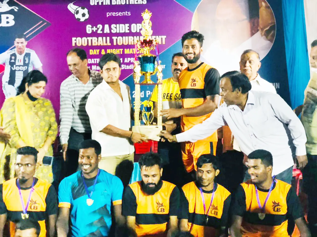 सामन्यानंतर प्रमुख पाहुणे जे. पी. शेट्टी, वीरभद्र जवळी, उमेश जवळी, मंदा कुंदरगी, अप्पय्या कडोळी, चंद्रकांत कडोळी, विनोद देसाई, प्रदीप, श्रीधर, निखील, सतीश, चन्नवीराप्पा, विशाल, सुनील हे सर्व उप्पीन ब्रदर्स यांच्या हस्ते विजेत्या डिसायडर संघाला 22 हजार रूपये, आकर्षक चषक तर उपविजेत्या केबीएफसी संघाला 15 हजार रूपये व चषक देऊन गौरविण्यात आले. स्पर्धेतील उत्कृष्ट खेळाडू सुधीर (डिसायडर) उत्कृष्ट गोलरक्षक ध्यानी सावंत (केबीएफसी), उत्कृष्ट डिफेंडर साहिल (कोळेकर ब्रदर्स), उत्कृष्ट संघ जनता गॅरेज यांना चषक, रोख रक्कम देऊन गौरविण्यात आले. या स्पर्धेत हुबळीचे पंच राजेश व जॉन यांनी काम पाहिले. स्पर्धा यशस्वी करण्यासाठी स्पर्धा सचिव रवी सागर उप्पीन व त्यांच्या सहकाऱयांनी विशेष परिश्रम घेतले.