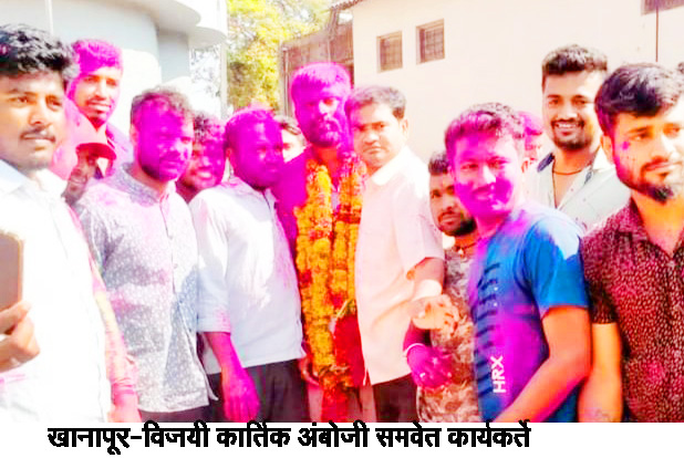 कार्तिक अंबोजी यांच्या विजयाबद्दल त्यांच्या समर्थकांनी गुलाल उधळून व फटाके वाजवून विजयोत्सव साजरा केला.