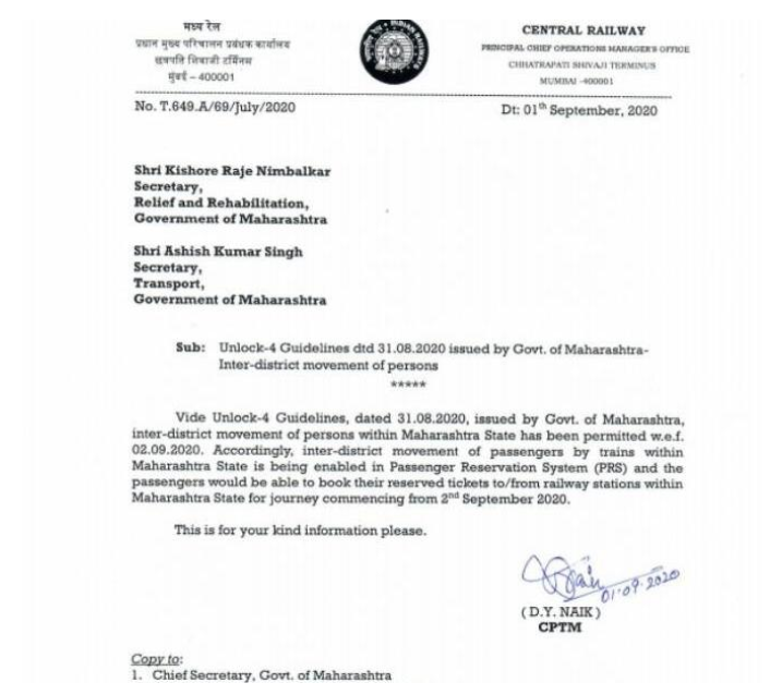 ह्या प्रवासी रेल्वे गाड्या लॉक डाऊन च्या काळात बंद करण्यात आल्या होत्या. परंतु आता अनलॉक 4 च्या नियमांनुसार या रेल्वे गाड्या पुन्हा सुरू होत आहेत.