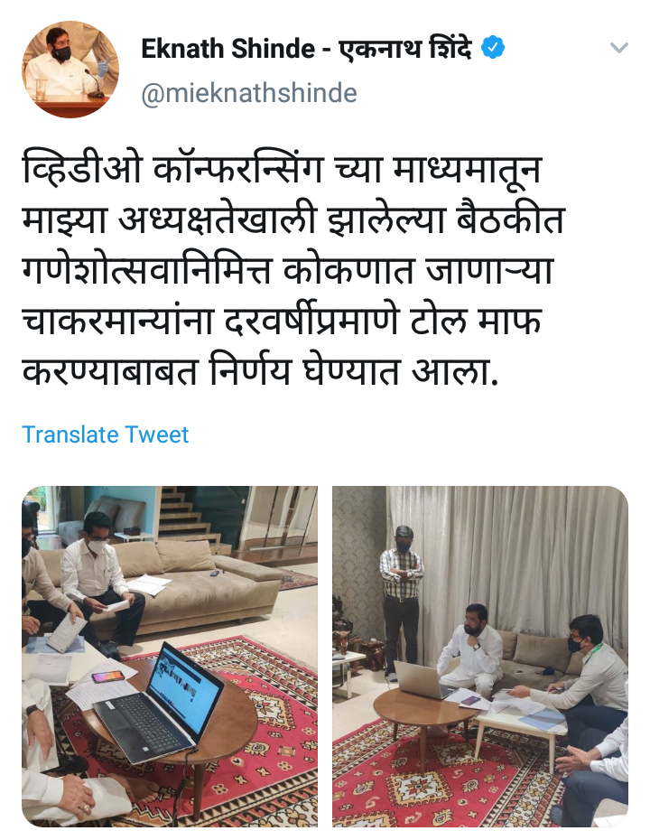 एकनाथ शिंदे, गृह राज्यमंत्री शंभूराज देसाई यांनी सार्वजनिक बांधकाम, महाराष्ट्र राज्य रस्ते विकास महामंडळ, कोकण विभागातील पोलिस आयुक्त, महापालिका आयुक्तांची व्हीडीओ कॉन्फरन्सिंगच्या माध्यमातून बैठक घेतली. या बैठकीत हा निर्णय घेण्यात आला.