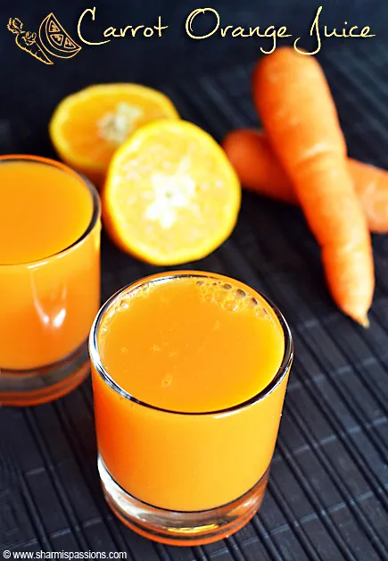 कृतीः प्रथम गाजर धुवून कोरडी करून घ्यावीत. त्याची दोन्हीकडील टोकं काढून त्याचे मध्यम आकाराचे तुकडे करुन घ्यावेत. संत्री सोलून त्यातील फोडी काढाव्यात. त्यातील गर काढून घ्यावा. आता ज्यूसर जारमध्ये गाजराचे केलेले तुकडे, संत्र्याचा गर, साखर आणि बर्फाचे छोटे तुकडे घालून मिश्रण बारीक करून घ्यावे. तयार मिश्रण गाळणीत ओतून गाळावे. त्याचा राहिलेला चोथा बाजूला काढावा. आता त्यात लिंबूरसाचे थेंब टाकावेत. तयार ज्यूस थोडावेळ फ्रिजमध्ये ठेवून अथवा वाटल्यास आणखीन बर्फाचे तुकडे टाकून पिण्यास द्यावे.