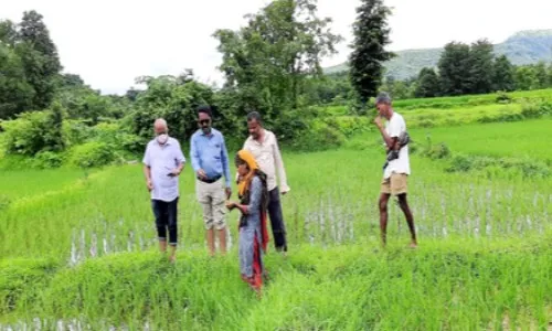 कणकवली तालुक्यात घोणसरी येथे निळ्य़ा भुंग्यांच्या प्रादुर्भावामुळे भातशेती धोक्यात आली आहे. गेले चार दिवस पावसाने उघडिप दिल्याने हा प्रादुर्भाव वाढू लागला आहे. यासाठी तातडीने कीटकनाशक फवारणी करण्याची सूचना कृषी अधिकारी सुभाष पवार यांनी शेतकऱयांना देत त्याबाबत प्रात्यक्षिक दाखविले.