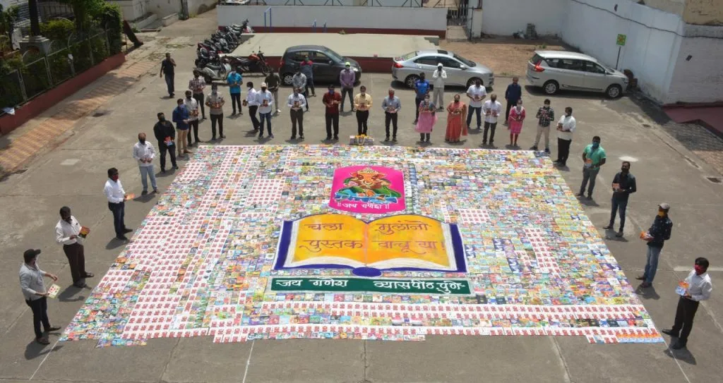 - रंगावलीभोवती ५ हजार पुस्तकांच्या पूजनाने प्रारंभ