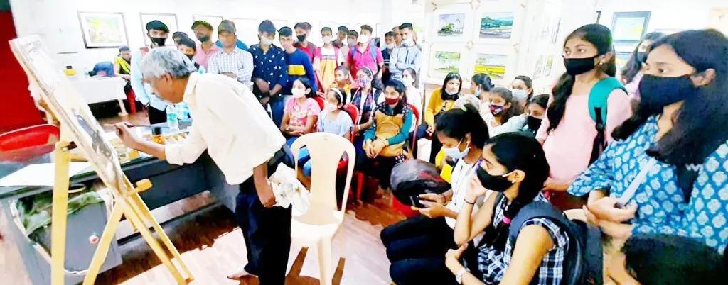 साधारण 45 मिनिटे त्यांनी चित्र रेखाटून दाखविले. याप्रसंगी चित्रकार किरण हणमशेट, महेश होनुले, सुभाष देसाई व चंद्रशेखर रांगणेकर यांच्यासह कला शाखेचे विद्यार्थी व कला रसिक उपस्थित होते.