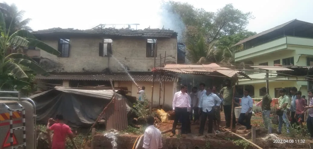 मुंबईत राहणाऱया अरुण भालेकर यांच्या भीमाशेठ निवासस्थानी त्यांचे नातेवाईक वसंत भोजने, पांडुरंग भोजने, शशिकांत भोजने, नीलेश भोजने व विजय भोजने असे नातेवाईक 4 वर्षांपासून राहतात. शुक्रवारी सकाळी घरात लक्ष्मी भोजने एकटय़ाच असताना शॉर्टसर्किटने घराला आग लागली. हा प्रकार लक्षात येताच शेजाऱयांनी धाव घेत लक्ष्मी यांना घराबाहेर काढले. त्यानंतर काही वेळातच आगीने रौद्ररूप धारण केले आणि एका खोलीतील सिलिंडरचा स्फोट झाला.