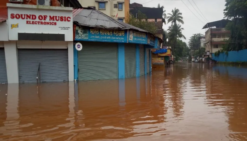 सतत कोसळत असलेल्या मुसळधार पावसाने चिपळूण शहरावर पुराचे संकट कोसळले आहे. वाशिष्ठी, शिवनदीला आलेल्या पुराने चिपळूण बाजारपेठ पाण्याखाली गेली आहे. शिवाजी चौक, पूजा टॉकिजपर्यंत पाणी आहे. बाजारपूल पाण्याखाली गेला आहे. चिपळूण शहरातील मध्यवर्ती बसस्थानकपर्यंत पाणी शिरले आहे. त्यामुळे बसस्थानकातील सर्व एसटीच्या गाड्या बाहेर काढण्यात आल्या आहेत.