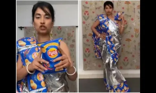 पोटॅटो चिप्सच्या रॅपरद्वारे तयार साडी परिधना करून इन्स्टाग्रामच्या जगतात एंट्री मारताच हे प्रकरण व्हायरल झाले आहे. लोक याबद्दल संमिश्र प्रतिक्रिया देत आहेत. तर काही जणांना हे मजेशीर तर काहींना क्रिएटिव्ह वाटत आहे.
