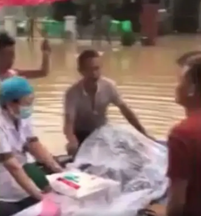 चीनमधील युन्नान प्रातांत मुसळधार पावसामुळे महापूर आला आहे. जनजीवन पूर्णतः विस्कळीत झाले असून, लोकांना घराबाहेर पडता येत नाही. अशाच परिस्थितीत युन्नानमधील एका गर्भवती महिलेला प्रसुती वेदना सुरू झाल्या. घटनास्थळी रुग्णवाहिका पोहचू शकत नसल्याने स्थानिकांनी तिला रुग्णालयात दाखल करण्यासाठी प्रयत्न सुरू केले. प्रसूतीसाठी तिला टायरवर बसवून वाहत्या पाण्यातून रुग्णालयात नेण्यात येत होते. मात्र, वाटेतच या महिलेने एका गोंडस मुलाला जन्म दिला.