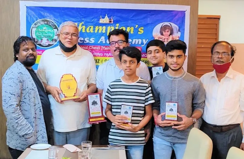 फोंडा येथील चॅम्पियन्स चेस अकादमीतर्फे बुद्धिबळ खेळाडूंसाठी चित्रकला, हस्ताक्षर, बुद्धिबळ प्रश्नमंजुषा स्पर्धा आदी विविध ऑनलाईन स्पर्धा आयोजित करण्यात आल्या. सर्व स्पर्धा बुद्धिबळ खेळावर आधारीत घेण्यात आल्या. स्पर्धेचा सविस्तर निकाल पुढीलप्रमाणे-चित्रकला स्पर्धा (जागतिक पातळीवरील बुद्धिबळ विजेते)-कनिष्ठ गट-भार्गव हब्बू , वरीष्ठ गट-श्वेश नाईक, उपकनिष्ठ गट-जेनिका सिक्वेरा. क्रिएटिव्ह पेंटिंग-ग्रीनी फर्नांडिस, आशा शिरोडकर, निधी शिरोडकर, मिली फर्नांडिस, मेधाज हरमलकर. हस्ताक्षर स्पर्धा-कनिष्ठ गट-सारा गायल फर्नांडिस, वरिष्ठ गट-कनिष्का नार्वेकर. बुद्धिबळ कोडे व प्रश्नमंजुषा-शैना नाईक, सानी गावस, इथन सिल्वेरा, दिया सावळ, विरजा देसाई, अत्रेय सातर्डेकर, रिया पाटील, आदित्य दुबळे, आर्या दुबळे, आर्यन शिरोडकर, अथर्व शिरोडकर. ब्रेन आयक्यू चाचणी-नीना दलाल, विवान बाळ्ळीकर, पुष्पशील सातर्डेकर, आकांक्षा देसाई याशिवाय त्रिविक्रम कुमार, शैना नाईक, जैना गालक, दामोदर शिरोडकर, विरजा देसाई, रिया पाटील. बेस्ट आऊट ऑफ वेस्ट-रिया पाटील. चाट मेकींग-स्वाती पाटील, रतन सोनी गडाड. पारितोषिक वितरण समारंभाला गोवा बुद्धिबळ संघटनेचे सचिव किशोर बांदेकर, उपाध्यक्ष आशेष केणी, चॅम्पियन्स चेस अकादमीचे विल्सन क्रूज आदी उपस्थित होते.