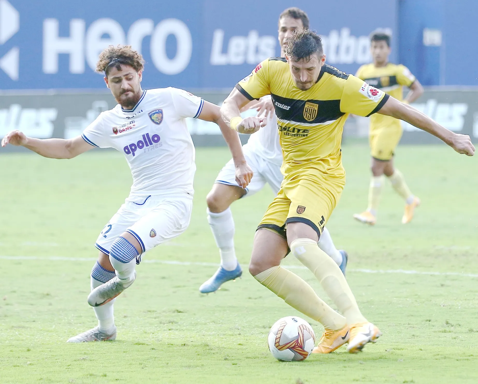 वास्कोतील टिळक मैदानावरील या सामन्यात चेन्नईन एफसीला वर्चस्व ठेवूनही गोल करण्यात अपयश आले. त्यांचे तीन वेळा गोल होण्याचे फटके आडव्या पट्टीला आदळून परत आले. हैदराबाद एफसीनी मिळालेल्या संधींचे सोने करताना दोन्ही गोल नोंदविले. त्यांचा आघाडी फळीतील स्पेनचा खेळाडू फ्रान सँडाजाने 28 व्या मिनिटाला खाते उघडले तर सामना संपण्यास सात मिनिटे शिल्लक असताना ऑस्टेलियाचा बदली खेळाडू जोएल चियानीसेने दुसरा गोल करून विजय सोपा केला.