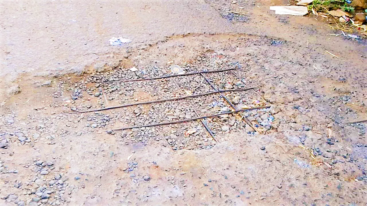 काही वर्षातच येथील सर्व्हिस रोडची ही अवस्था झाली आहे. येथील रस्त्याचे बांधकाम करताना कंत्राटदाराने कमी दर्जाचे साहित्य वापरल्यामुळे ही परिस्थिती उद्भवली आहे. शहराचा विकास करण्यासाठी कोटय़वधी रुपये निधी मंजूर होतो. मात्र कमी दर्जाचे साहित्य वापरल्याने दर दोन-तीन वर्षांनी पुन्हा रस्त्यासाठी निधी मंजूर होत असल्याने कंत्राटदाराने आपला मनमानीपणा सुरू ठेवल्याचे चित्र पहावयास मिळत आहे. येथील फक्त सर्व्हिस रोडवर ही स्थिती नसून उड्डाणपुलावर देखील ही परिस्थिती उद्भवली आहे. येथील सर्व्हिस रोडवरून ये जा करताना पादचाऱयांना समस्या निर्माण झाली असून पादचारी पाय अडकून पडण्याचे प्रकार देखील वाढले आहेत. कंत्राटदाराच्या हलगर्जीपणामुळे ही परिस्थिती उद्भवली असल्याचा आरोप करण्यात येत आहे. त्यामुळे नागरिकांसह वाहनधारकांतून तीव्र नाराजी व्यक्त करण्यात येत आहे. याची त्वरित दुरुस्ती करण्याची मागणी होत आहे.