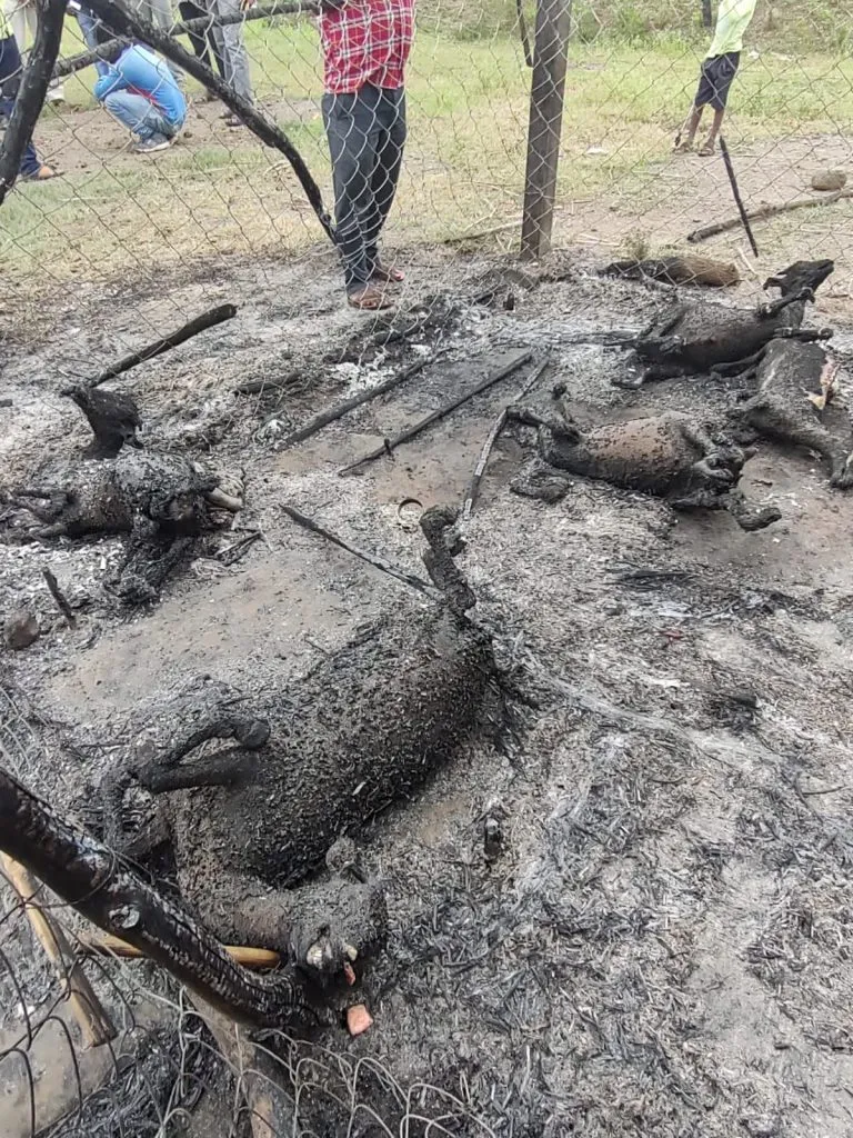 याबाबत सविस्तर माहिती अशी, आबा चव्हाण हे वरकुटे-मलवडी हद्दीतील डूंबा नावाच्या शिवारात आपल्या कुटुंबासोबत राहतात. त्यांनी ६ शेळ्या पाळल्या होत्या. बुधवारी सकाळी १०.३० वा. अचानक राहत असलेल्या छप्पराला आग लागली. यात सहा गाभण शेळ्या जाग्यावरच जळून खाक झाल्या. तसेच घरातील सर्व साहित्य, धान्य, कपडे जळून राख झाली. या आगीत चव्हाण यांचे सुमारे ८० ते ९० हजाराचे नुकसान झाले आहे. आबा चव्हाण व त्यांचे कुटुंंब या आगीपासून थोडक्यात बचावले आहे. त्यांना वरकुटे – मलवडी येथील खाजगी दवाखान्यात दाखल केले आहे.