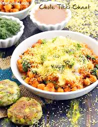 कृती : गरम तेलात कांदा गुलाबी रंगावर परतवून त्यात छोले साहित्य घालून दोन मिनिटे परतवावे. दुसऱया कढईत गरम तेलात जिरं, कलोंजी टाकावे. नंतर टीक्कीचे साहित्य मिक्स करून मिश्रण चांगले मॅश करून घ्यावे. गार झाले की टिक्की बनवून गरम तव्यावर तेलाचे थेंब पसरवून शालोफ्राय करावेत. आता तयार टीक्की बाऊलमध्ये घेऊन त्यावर छोले घालावे. नंतर त्यावर दही, ग्रीन चटणी, गोड चटणी आणि नायलॉन शेव घालावे. आता तयार चाट खाण्यास द्या.