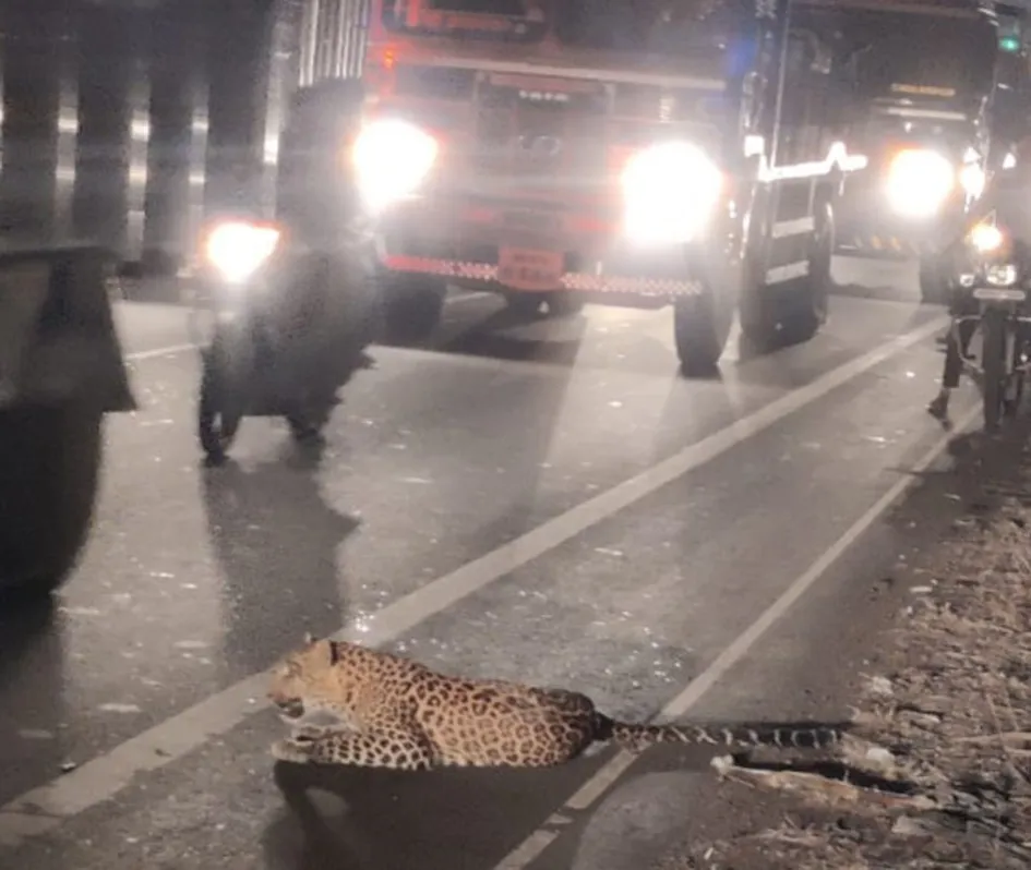 कराडजवळ महामार्गावर बिबटय़ाला वाहनाची धडक, 19 मिनिटांचा थरार