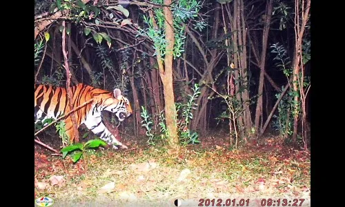 गेल्या काही दिवसांपासून कणकुंबी आणि परिसरामध्ये वाघाच्या पायाचे ठसे अनेक ठिकाणी मिळाले होते. परंतु कॅमेऱयामध्ये वाघ पहिल्यांदाच कैद झाला आहे.