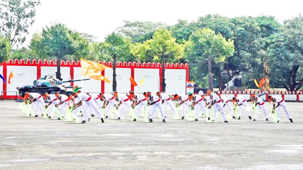 एमएलआयआरसीच्या जवानांनी झांजपथक, लेझीम तसेच मल्लखांब या मराठमोळय़ा खेळांचे सादरीकरण केले. अतिशय उत्तम पद्धतीने जवानांनी सादरीकरण करत उपस्थित मान्यवरांची मने जिंकली. छत्रपती शिवाजी महाराजांच्या नावाचा जयघोष करत जवानांनी ढोल-ताशांच्या तालावर सादर केलेले झांजवादन हे सर्वांच्याच कायम स्मरणात राहील. उपस्थितांनी टाळय़ांचा कडकडाट करत जवानांचे कौतुक केले. याचसोबत ‘ए माही मेरे’ यासारखी देशभक्तीपर गीते सादर करून उपस्थितांची वाहव्वा मिळविली. एनसीसी ग्रुपनेही गीत सादर केले.