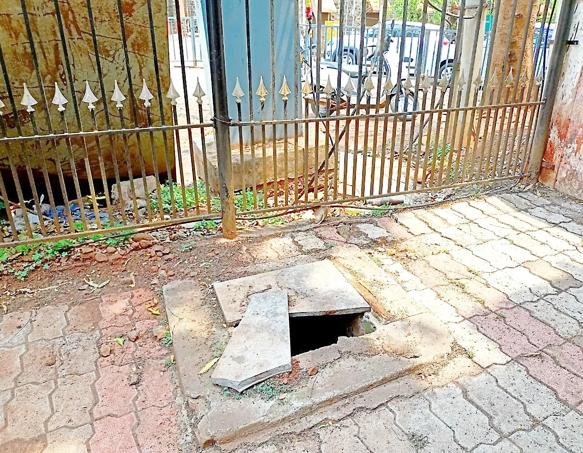 या डेनेज चेंबरमधून काहीवेळा पाणी बाहेर येते. हा चेंबर बऱयाचवेळा ब्लॉक देखील होतो. त्यामुळे पाण्याचा निचरा योग्यप्रकारे होत नाही. परिणामी या परिसरात सर्वत्र दुर्गंधी पसरत आहे. निवेदने देण्यासाठी तसेच विविध कामांसाठी आलेल्या नागरिकांना या दुर्गंधीचा सामना करावा लागत आहे. या डेनेजच्या चेंबरला झाकण बसवावे तसेच दुरुस्ती करावी. जेणेकरून या परिसरात दुर्गंधी पसरणार नाही, याची खबरदारी घ्यावी, अशी मागणी करण्यात आली आहे.