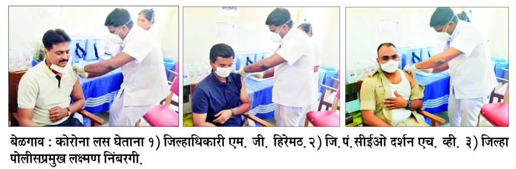 जिल्हाधिकारी एम. जी. हिरेमठ यांच्यासह जिल्हा पंचायतीचे मुख्य कार्यकारी अधिकारी दर्शन एच. व्ही. आणि जिल्हा पोलीसप्रमुख लक्ष्मण निंबरगी यांनी सिव्हिल हॉस्पिटलमध्ये को-व्हॅक्सीन लस घेतली आहे. ही लस नियमानुसार सर्वांनी घ्यावी. ही लस सुरक्षित असून या लसीपासून कोणतेही विपरित परिणाम होणार नाहीत, असे जिल्हाधिकाऱयांनी स्पष्ट केले.