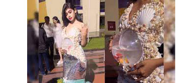 चेन्नईतील एका फॅशन शोमध्ये मॉडेल जिवंत मासा ड्रेसमध्ये ठेवून रॅम्पवॉक करताना दिसून आली. याचा व्हिडिओ सोशल मीडियावर शेअर करण्यात आला आहे. यात एक मॉडेल जलपरीच्या पद्धतीने पोशाख परिधान करून असल्याचे दिसून येते. या पोशाखातच एक फिशपॉन्डसारखे भांडे तयार करण्यात आले असून त्यात छोटे मासे ठेवण्यात आले होते. या माशांसोबत मॉडेलने रॅम्पवॉक केला आहे.
