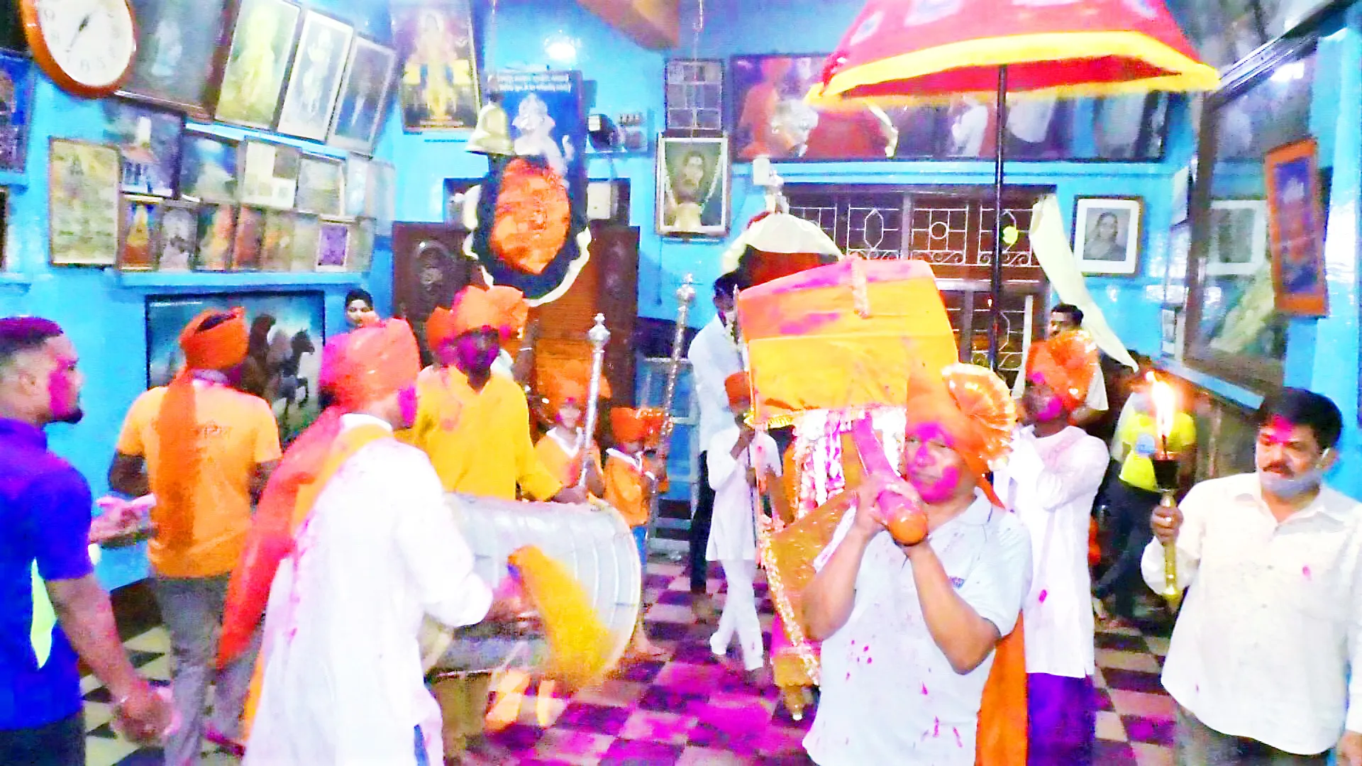 यावेळी सायंकाळी 7 वा. जोतिबा देवाला पालखीत बसवून ढोल ताशांच्या गजरात देवावर गुलाल, खोबऱयाची उधळण करण्यात आली आणि देवाला खेळविण्यात आले. रात्री 12 वाजता शास्त्रपूजा, अभिषेक करून पहाटे 3 वा. जोतिबा देवाला तयार करण्यात आलेला दवणाचा तुरा अर्पण केला. यावेळी सामाजिक अंतर पाळून सर्व धार्मिक विधी मंदिरापुरते मर्यादित करण्यात आले.