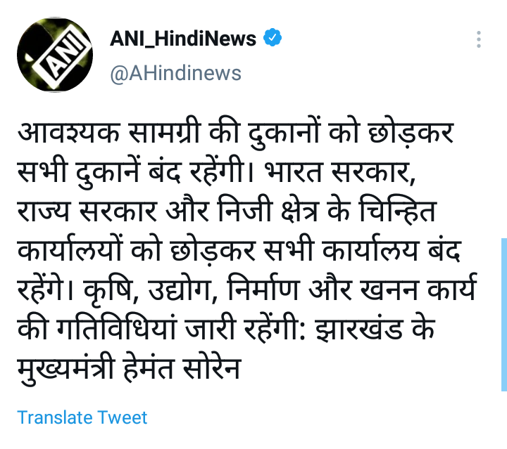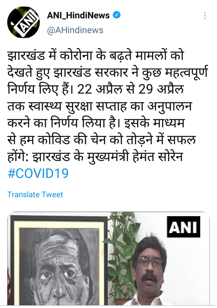 याबाबत माहिती देताना मुख्यमंत्री हेमंत सोरेन म्हणाले की, 22 ते 29 एप्रिल या कालावधित हा लॉकडाऊन लागू असणार आहे. कोरोनाग्रस्तांची वाढती संख्या लक्षात घेता झारखंड सरकारने हा निर्णय घेतला आहे. सरकारने जारी केलेल्या या लॉकडाऊनला सुरक्षा सप्ताह असे नाव दिले आहे.