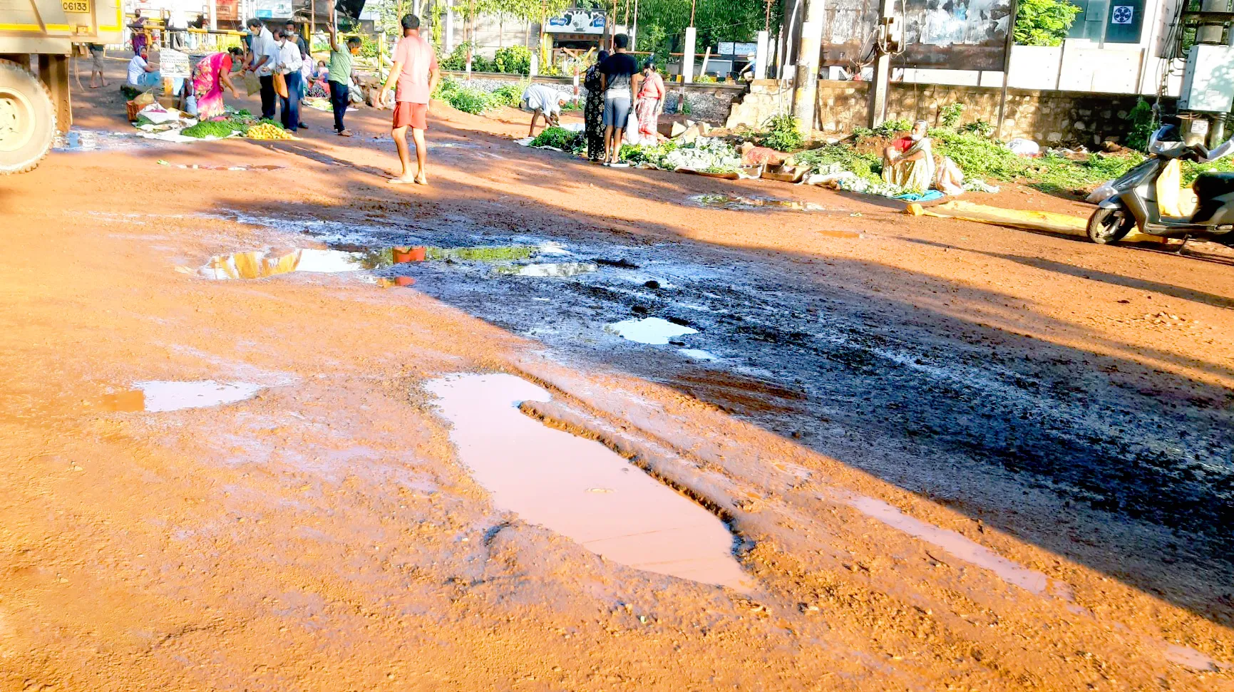 रविवारी विकेंड कर्फ्यू असल्याने नागरिक घरीच होते. सोमवारी सकाळी नागरिक खरेदीसाठी बाहेर पडले. त्यावेळी पहिल्या रेल्वेगेटनजीक पडलेल्या खड्डय़ांमुळे पादचाऱयांना आणि वाहनधारकांना चिखलाचा सामना करावा लागला. यावेळी चिखलात अनेक वाहने घसरून पडण्याचे प्रकारदेखील घडले. तसेच वाहनधारकांना अनेक अडचणींचा सामना करावा लागला. त्यामुळे पावसाळय़ापूर्वी हा मार्ग खड्डेमुक्त करावा, अशी मागणी होत आहे.