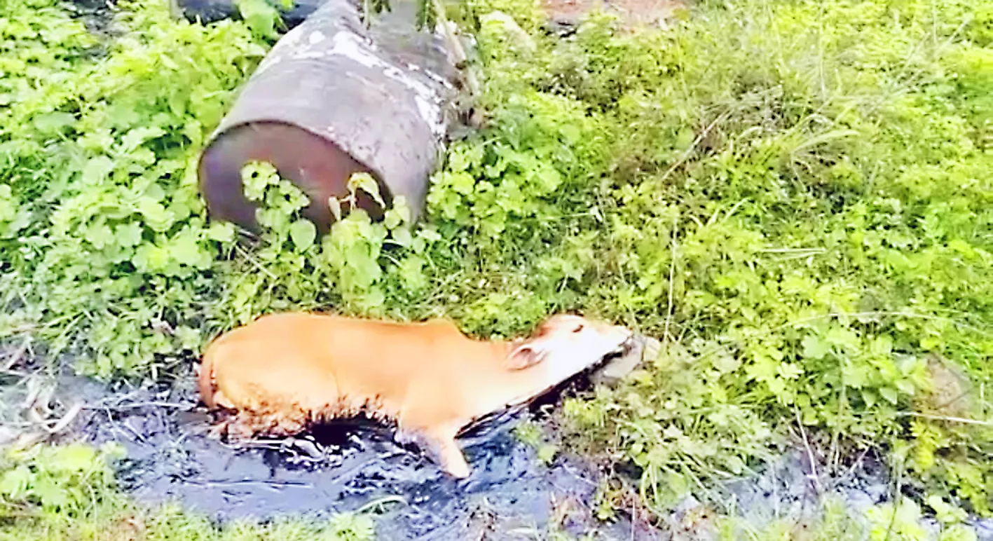 रस्त्याच्या विकासासाठी आणलेले डांबराचे बॅरेल कणबर्गी येथील ग्लास हाऊस परिसरात ठेवण्यात आले होते. पण ऊन्हामुळे काही बॅरेलमधील डांबर वितळून पसरले आहे. या परिसरातून जनावरे चरावयास जात असतात. पण वितळलेल्या डांबरामध्ये काही जनावरे अडकून पडल्याची घटना घडली आहे. वितळलेल्या डांबरामध्ये गायीचे वासरू तसेच बकरी अडकून पडल्याने पायाला जखम झाली आहे. शेतकऱयांना तसेच बकरी मालकांना मोठा फटका बसला आहे. याठिकाणी पसरलेल्या डांबरामुळे जनावरांचा जीव जाण्याची वेळ आली आहे. त्यामुळे झालेल्या नुकसानभरपाईला जबाबदार कोण? असा मुद्दा उपस्थित करण्यात येत आहे. याची पाहणी करून जनावर मालकांना नुकसानभरपाई द्यावी, तसेच पसरलेल्या डांबराचा बंदोबस्त करण्याची मागणी होत आहे.
