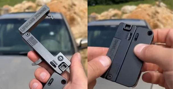 डेबिट कार्डाच्या आकाराची ही बंदूक वास्तवात उपलब्ध आहे. ती कागदाप्रमाणे घडी घालून ठेवता येते. जेव्हा तिची अशी घडी घातली जाते, तेव्हा ती अक्षरश: डेबिट कार्डाप्रमाणेच दिसू लागते. मात्र, ती जेव्हा उघडली जाते, तेव्हा तिचा खरा मोठा आकार दृष्टीस पडतो. अमेरिकेत ती निर्माण करण्यात आली आहे.