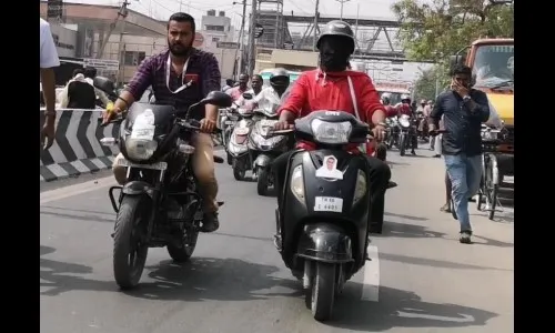 समर्थकाचा प्रताप, डोळय़ावर काळी पट्टी बांधून चालविली स्कुटी