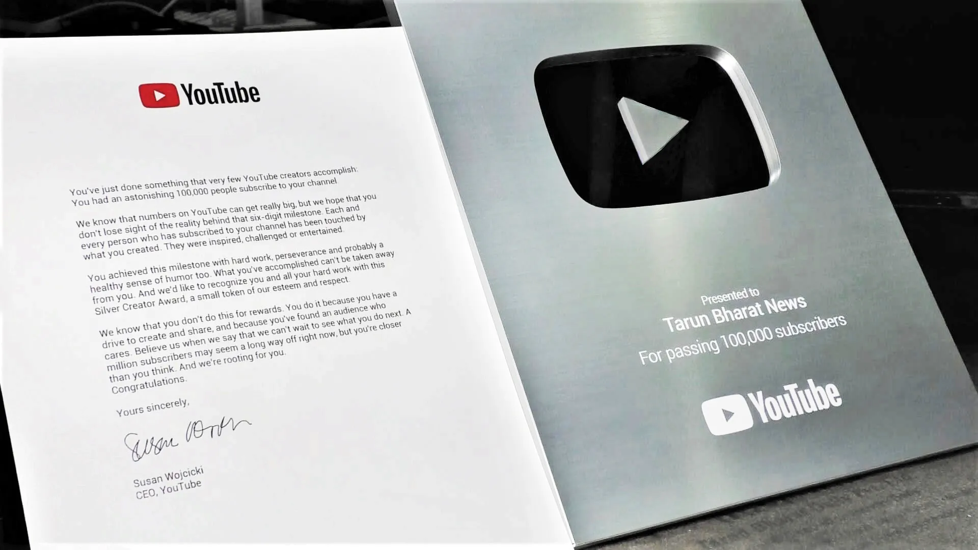 1 लाख सबस्क्रायबर चा टप्पा ओलांडणाऱया युटय़ुब चॅनेल्स ना हा पुरस्कार देऊन युटय़ुब कडून गौरव करण्यात येतो. या पुरस्कारामध्ये युटय़ुब चे सिल्वर बटण आणि सीईओ सुजान ओजीसकी यांच्या स्वाक्षरीचे गौरवपत्र समाविष्ट आहे. तुम्ही हे काम पुरस्कारासाठी करीत नाही, मात्र तुमच्या कार्याची दखल घेऊन या कामाला दाद देणे हे आपले कर्तव्य ठरते. आपले चॅनेल या पुढील काळात मिलियन सबस्क्रायबर आणि त्यापुढीलही टप्पे नक्कीच पार करेल असा विश्वासही व्यक्त करण्यात आला आहे.