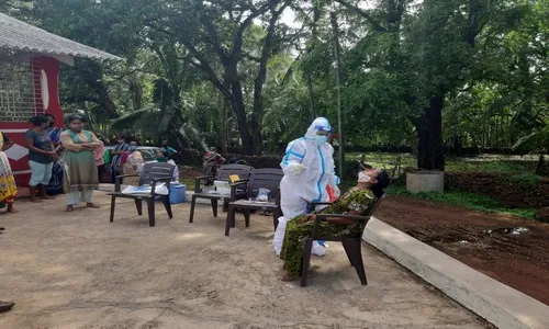 तिरोडा गावात कोरोनाचा फैलाव रोखण्यासाठी मळेवाड प्राथमिक आरोग्य केंद्र आणि तिरोडा ग्रामपंचायत यांच्यावतीने तिरोडा खाशेवाडी दत्तमंदिर येथे ग्रामस्थांचे कोरोना तपासणी शिबिर घेण्यात आले. सहा जणांची रॅपिड टेस्ट करण्यात आली.त्यात चारजण पाॅझिटीव्ह रुग्ण आढळले. तर ५४ जणांची आरटीपीसीआर टेस्ट करण्यात आली. त्याचा अहवाल मंगळवारी येणार आहे. मळेवाड प्राथमिक आरोग्य केंद्राच्या डाॅ. आदीती ठाकुर, डाॅ. अंकिता पावसकर यांच्या मार्गदर्शनाखाली शिबिर झाले.