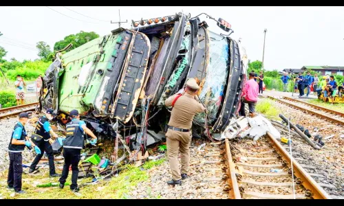 थायलंडची राजधानी बँकॉकमध्ये रविवारी झालेल्या भीषण दुर्घटनेत 12 हून अधिक जणांना जीव गमवावा लागला आहे. पूर्व बँकॉकमध्ये एक बस आणि रेल्वे यांच्यात भीषण टक्कर झाल्याने 18 जणांचा मृत्यू झाला आहे. तर 40 हून अधिक जण जखमी झाले आहेत. मृतांमध्ये बसमधील प्रवाशांचा समावेश आहे. हे प्रवासी एका धार्मिक कार्यक्रमात सामील होण्यासाठी जात होते असे सांगण्यात येते. या दुर्घटनेत बसचा वरील भाग तुटून पडला आहे. क्रेनच्या मदतीने बस उचलण्यात आल्याची माहिती बचाव कर्मचाऱयांनी दिली आहे. थायलंडमध्ये अशाप्रकारच्या घातक दुर्घटनांचे प्रमाण तुलनेने अधिक आहे. धोकादायक रस्त्यांसह भरधाव वेग, नशेत वाहन चालविणे आणि कमकुवत कायदा अंमलबजावणी ही यामागील कारणे आहेत.