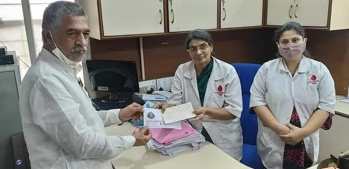 श्रीमंत दगडूशेठ हलवाई सार्वजनिक गणपती ट्रस्टच्या पुढाकाराने व राजीव गांधी टेक पार्क हिंजवडी येथील ग्लोबंट इंडियाच्या कौशल्य-सुलभिकरण संचालिका गणेशभक्त लीना कुरुप यांच्या सहकार्याने नवी पेठेतील इंडियन सिरिओलॉजिकल इन्स्टिटयूट रक्तपेढीकडे ही देणगी सुपूर्द करण्यात आली. यावेळी ट्रस्टचे उपाध्यक्ष सुनील रासने, सुवर्णयुग तरुण मंडळाचे संघटक मंगेश सूर्यवंशी, सेवा मित्र मंडळाचे शिरीष मोहिते, राजेंद्र परदेशी आदी उपस्थित होते.