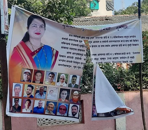 कृपा घाग या नगरपंचायतमधील शिवसेनेच्या विद्यमान नगरसेविका आहेत. त्यांनी पाच वर्षात केलेल्या विकास कामांबद्दल त्यांचे आभार मानणारे फलक त्यांच्या समर्थकांनी फॅमिली माळ परिसरात लावले होते. ते रविवारी रात्री अज्ञात समाजकंटकांनी फाडून त्याची नासधूस केली. याबाबत बोलताना विरोधकांच्या पायाखालील वाळू घसरू लागल्याने त्यांच्याकडून हे कृत्य झाले असावे अशी बोलकी प्रतिक्रिया कृपा घाग यांनी तरुण भारतशी बोलताना दिली.