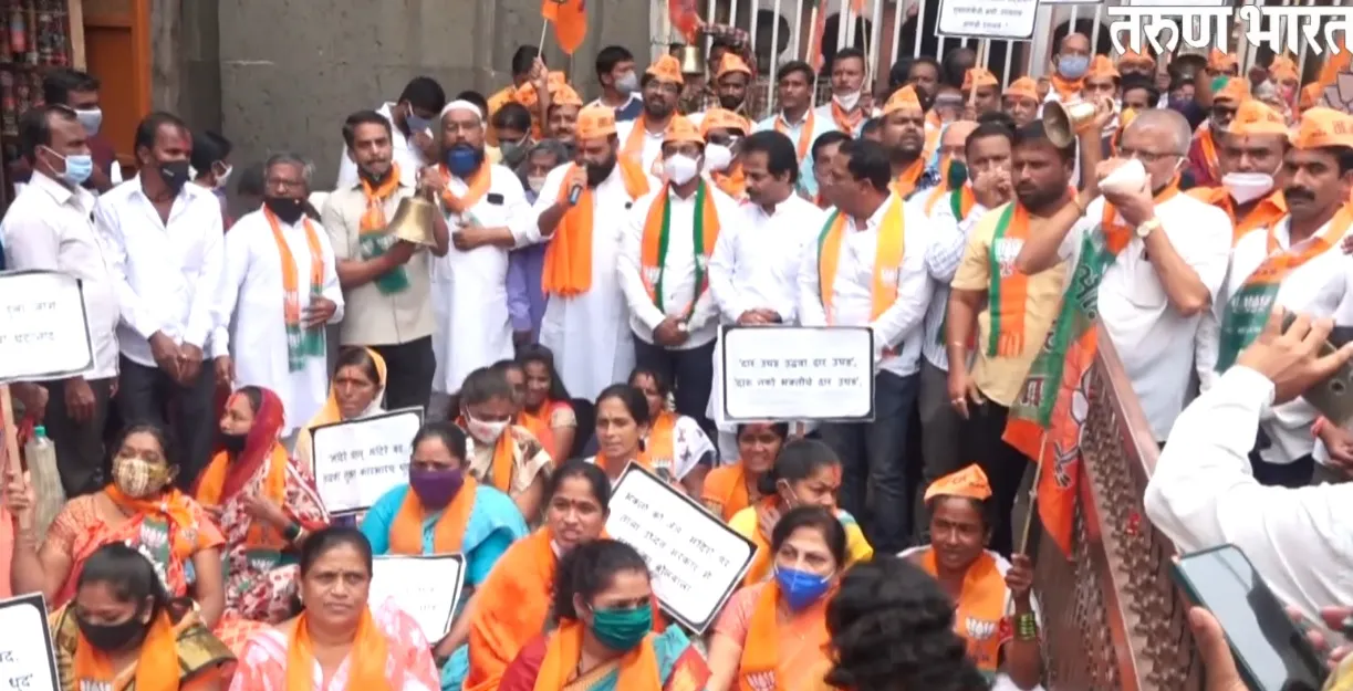 दुसऱया लाटेनंतर राज्यात सर्व व्यवहार सुरू झाले, मग मंदिरेच बंद का, असा प्रश्न करत भारतीय जनता पक्षाने येथील अंबाबाई मंदिरासमोरील महाद्वारात सोमवारी दुपारी घंटानाद, शंखनाद आंदोलन केले. तसेच दहा दिवसांत मंदिरे खुली करण्याचा निर्णय न झाल्यास आंदोलन तीव्र करण्याचा इशारा भाजप पदाधिकाऱयांनी यावेळी दिला.
