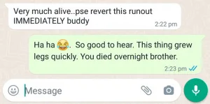 ओलांगा यांनी बुधवारी सकाळी ट्वीट करत हीथ स्ट्रीकचे निधन झाल्याचे म्हटले होते. झिम्बाब्वे क्रिकेटच्या महान क्रिकेटपटूच्या आत्म्याला शांती लाभो. तुझ्यासोबत खेळणं हा एक सन्मान आहे, असेही ओलांगनं आपल्या पहिल्या ट्वीटमध्ये म्हटले होते पण त्यानंतर ओलांगने ट्वीट डिलीट केले आणि पुन्हा एक नवे ट्विट करत स्ट्रीक यांच्या बाबत खुलासा केला. या नव्या ट्वीटमध्ये ओलांगने स्ट्रीक हयात असून त्याच्या निधनाच्या बातम्या खोट्या असल्याचा दावा केला आहे. तसेच, त्याने ट्वीटमध्ये स्ट्रीकसोबतच्या व्हॉट्सअॅप चॅटचा क्रिनशॉटही शेअर केला आहे.