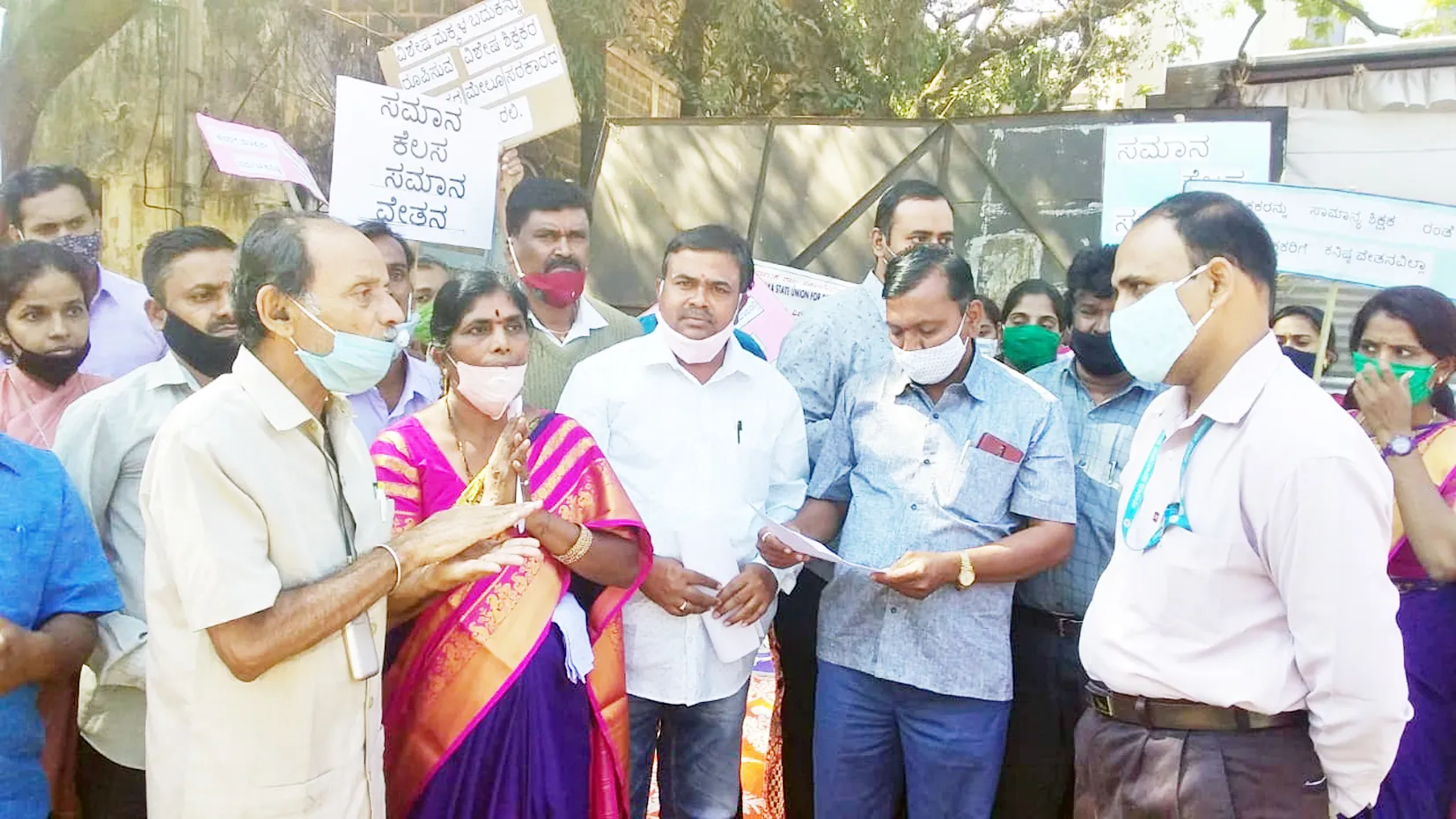 कर्नाटक राज्यातील दिव्यांग शाळांमधील शिक्षकांना वेळेत वेतन द्यावे. सरकारी नियमांनुसार पूर्ण वेतन द्यावे, याचबरोबर इतर समस्या सोडविण्याबाबत जिह्यातील विशेष शिक्षक, शिक्षकेतर संघटनेच्यावतीने जिल्हाधिकारी कार्यालयासमोर निदर्शने करून निवेदन देण्यात आले.
