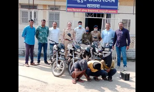 पोलिसांनी दिलेली माहिती अशी, गुन्हे प्रकटीकरण शाखेचे अधिकारी व अंमलदार पोलीस ठाणे हद्दीत पेट्रोलिंग करत असताना त्यांना सायंकाळी 5 वाजण्याच्या सुमारास रेकॉडवरील मोटार सायकल चोरी करणारा अभिषेक मार्तंड कुचेकर काळय़ा रंगाच्या स्प्लेंडर मोटार सायकल (क्रं. एमएच 11 एआर 8386) घेऊन वेगात करंजेनाका बाजुकडे जात असताना दिसला. यावेळी ठाणे अंमलदार यांना मोटार सायकल चोरीची असल्याचा संशय आल्याने त्यांनी अभिषेक याचा पाठलाग करून त्याला करंजेनाका येथे थांबवून ताब्यात घेतले. आणि त्याच्याकडे मोटार सायकलची विचारपुस केली. ही मोटार सायकल एसटी स्टॅड जवळील कॉँग्रेस भवनच्या शेजारुन मज्जीद जवळून चोरुन आणल्याची कबुली दिली. तसेच शाहूपुरी, शहर पोलीस ठाण्याच्या हद्दीतून मोटार सायकल चोरी केल्याची कबुली देऊन या शिरवळ व पुणे येथे ठेवल्याची माहिती दिली. या माहितीच्या आधारे गुन्हे प्रकटीकरण शाखेचे अंमलदार यांनी मोटार सायकली हस्तगत केल्या आहेत.