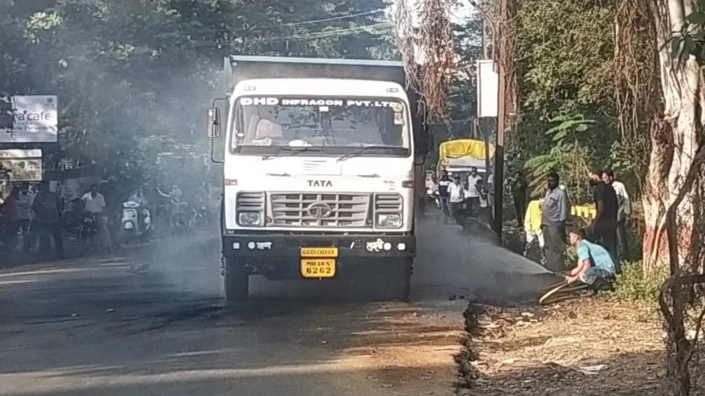 सातारा दूध संघासमोरील रस्त्यावरून निघालेला डंबर (क्रं. एमएच 50 एन 6262) ला आग लागली. ही आग बघून तत्काळ अग्नीशामक दलाला कळविण्यात आले. अग्नीशामक दलाने घटनास्थळी पोहचून आग ओटक्यात आणली.