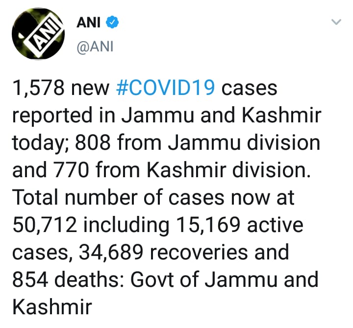 तर आतापर्यंत 854 जणांचा कोरोनामुळे मृत्यू झाला आहे. यामध्ये जम्मूतील 137 जण तर काश्मीरमधील 717 जणांनी आपला जीव गमावला आहे.