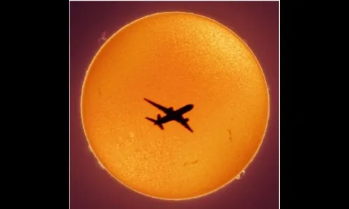 विमानासोबत सूर्याचे एक दुर्लभ छायाचित्र