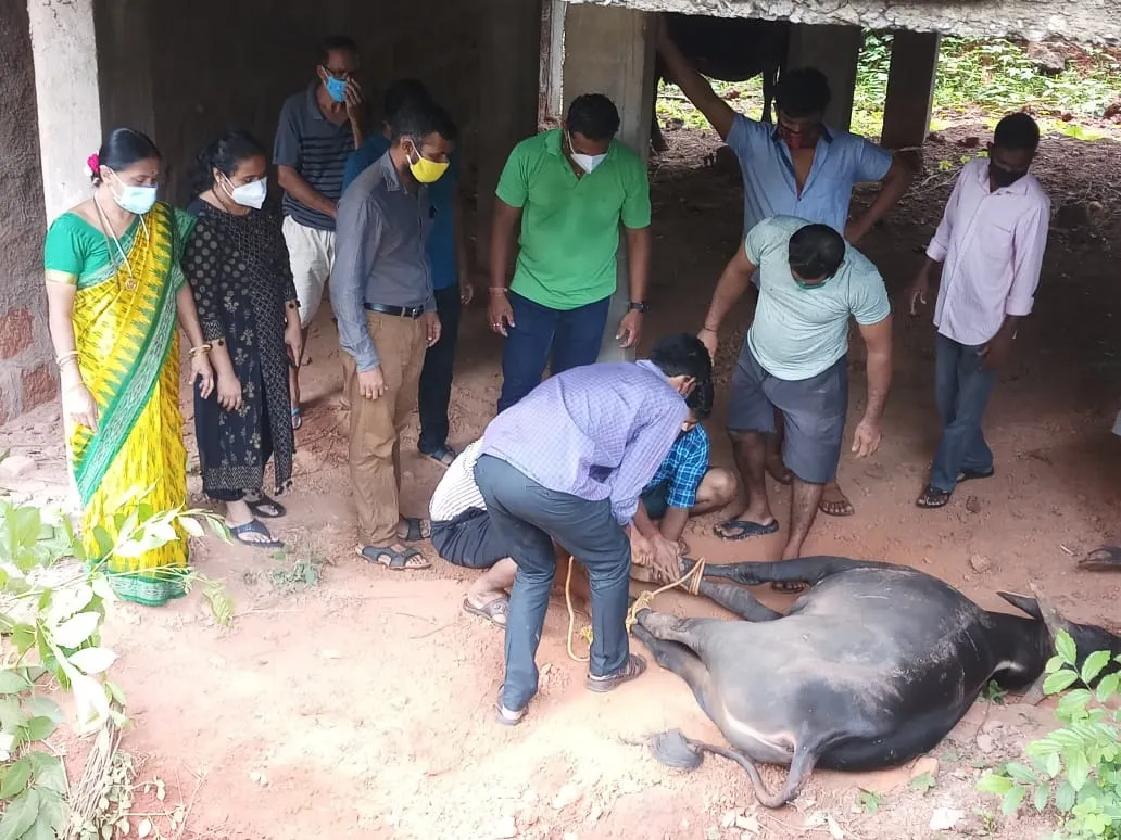 काणका साईमंदिराजवळ मुस्लीमवाडय़ावर एका इमारतीच्या बाजूला चारा खात असलेली गाय तोल जाऊन ती खाली कोसळली. सदर घटना बुधवारी रात्री घडली असता ती गाय जबर जखमी होऊन इमारतीच्या खाली कोसळली. घटनेची माहिती म्हापसाच्या नगराध्यक्ष शुभांगी वायंगणकर यांना दिली असता त्यांच्या पुढाकाराने पालिका कर्मचाऱयांनी त्या गाईला जीवदान देत अखेर गुरांच्या डॉक्टरांकडे पाठविण्यात आले.