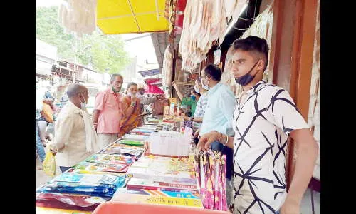 नवरात्रोत्सवानिमित्त बाजारपेठही सज्ज झाली आहे. नवरात्रीचे विविध साहित्य बाजारपेठेत दाखल झाले आहे. मात्र यंदा पोषाख, टिपरी, दागिने या गरबा दांडियासाठीच्या साहित्यापेक्षा पूजा साहित्य खरेदीवर भर देण्यात आला आहे.