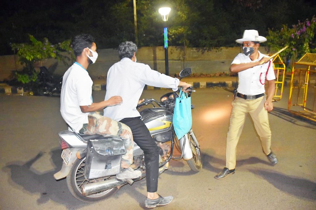 कोरोना महामारी थोपविण्यासाठी राज्य सरकारने बुधवार दि. 21 एप्रिलपासून बेळगावसह कर्नाटकात रात्रीचा कर्फ्यू जारी केला आहे. या आदेशाची अंमलबजावणी करण्यासाठी पहिल्याच दिवशी पोलीस यंत्रणा रस्त्यावर उतरल्याचे दिसून आले. वाहतूक व शहर पोलीस रात्री उशिरापर्यंत रस्त्यावर होते.