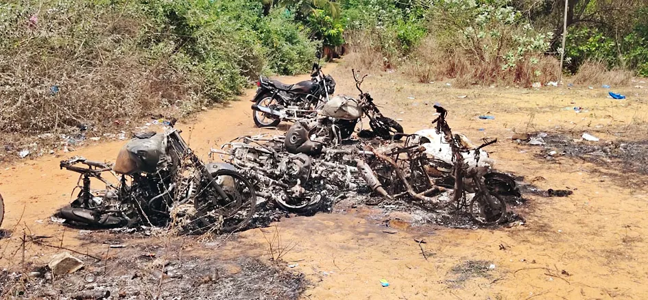 बुधवारी पहाटे साडेतीनच्या सुमारास बामणवाडा कांदोळी येथे खुल्या जागेत पार्क करून ठेवण्यात आलेल्या जीव सुरक्षा गार्ड कर्मचाऱयांच्या एकूण दहा दुचाक्या बुधवारी पहाटे अज्ञाताकडून जाळून भस्मसात करण्यात आल्याची तक्रार कळंगुटच्या पोलिसात दाखल करण्यात आली आहे.