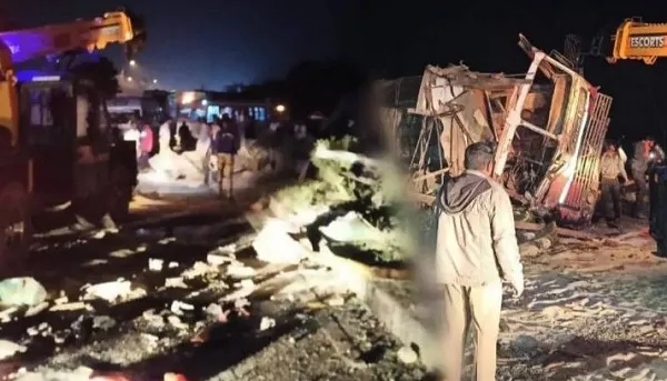 शनिवारी रात्री साडेअकराच्या सुमारास मालवाहक व टँकरचा अपघात झाला. तांदूळ वाहतूक करीत सोलापूरहून पुण्याकडे निघालेला मालवाहक टेंभुर्णीच्या पुढे भीमानगर येथे नादुरूस्त असलेला रस्ता ओलांडताना समोरून-पुण्याहून सोलापूरच्या दिशेने येणाऱ्या टँकरची समोरासमोर जोरदार धडक झाली. हा अपघात एवढा भीषण होता की दोन्ही वाहनचालकांसह पाचजणांचा जागीच मृत्यू झाला.