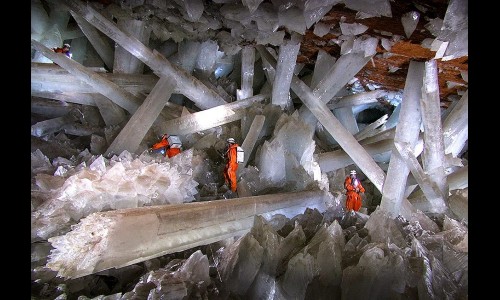 मेक्सिकोच्या सिएरा डी नेका पर्वताच्या सुमारे 984 फूट खाली विशाल पिलर म्हणजेच स्तंभाच्या आकारातील क्रिस्टल अस्तित्वात आहेत, हे क्रिस्टन एका गुहेत असल्याने त्याला जायंट क्रिस्टल केव्ह नाव देण्यात आले आहे. 2000 साली या गुहेबद्दल वैज्ञानिकांना समजल्यावर ते दंगच झाले, कारण उत्खननादरम्यान पर्वताच्या इतक्या खाली हे अद्भूत दृश्य दिसून आले होते. हे क्रिस्टल प्रत्यक्षात जिप्समने तयार झाले आहेत. जिप्सम हे एकप्रकारचे खनिज असून ते पेपर आणि वस्त्राsद्योग क्षेत्रात वापरले जाते. तसेच सिमेंटमध्ये देखील याचा वापर होतो.