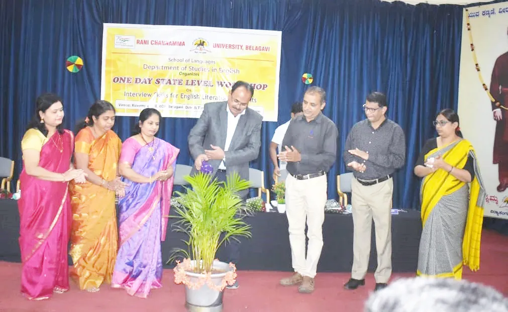 राणी चन्नम्मा विद्यापीठाच्या इंग्रजी विभागातर्फे विद्यार्थ्यांसाठी मुलाखत कौशल्य यावर एक दिवसीय राज्यस्तरीय कार्यशाळेचे आयोजन करण्यात आले होते. यावेळी कार्यक्रमाचे उद्घाटन व प्रा. डॉ. कविता कुसुगल यांच्या ‘इंग्लिश फॉर एम्पपॉवरमेंट’ या पुस्तकाचे प्रकाशन उपकुलगुरु प्रा. एम. रामचंद्रगौडा यांच्या हस्ते करण्यात आले. यावेळी प्रा. डॉ. पूजा हल्याळ यांनी सदर पुस्तकाबाबत माहिती दिली. यावेळी व्यासपीठावर प्रा. विजय एफ. नागन्नावर व प्रा. डॉ. मधुश्री कल्लीमनी उपस्थित होत्या. डॉ. नागरत्ना परांडे यांनी इंग्रजी विभागातर्फे आयोजित करण्यात येत असलेल्या विविध उपक्रमांबाबत माहिती दिली.